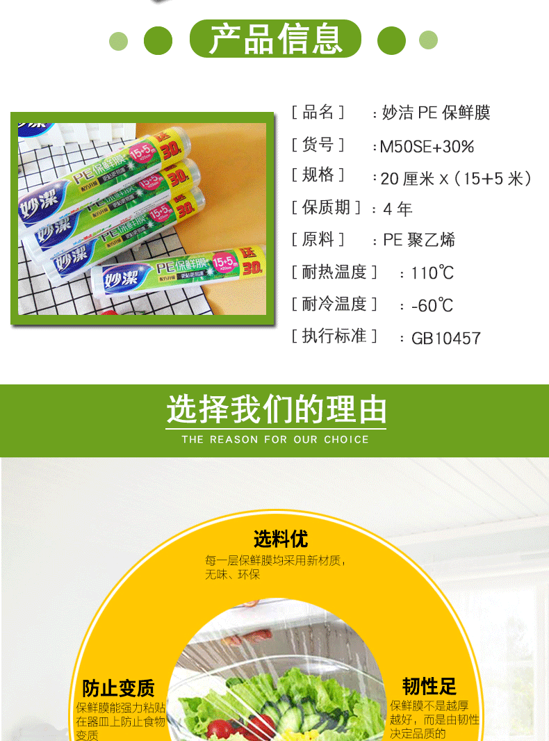 妙洁PE保鲜膜型小碗经济装15米+5米_20厘米包邮M50SE+30%